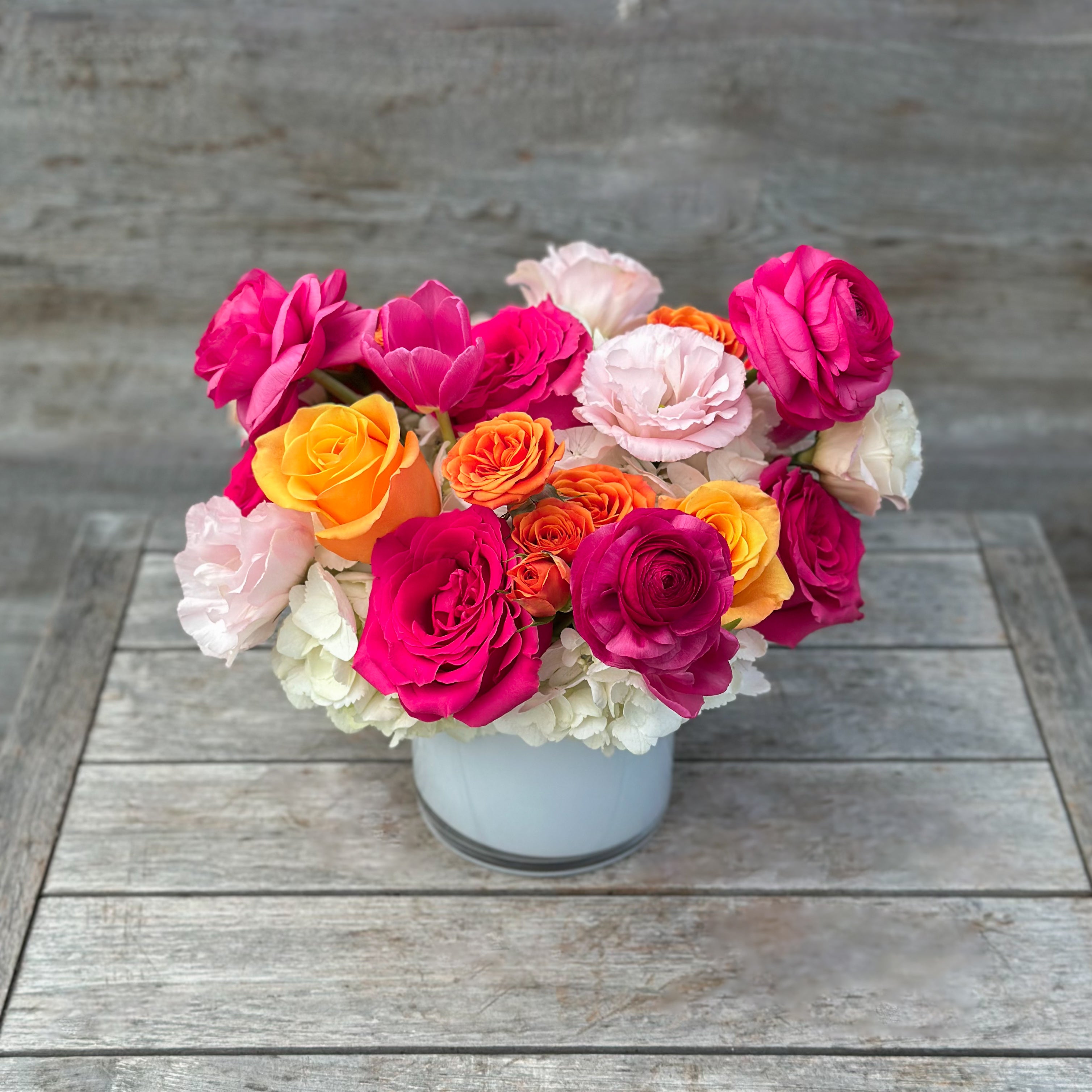 Designer's Choice arrangements are completely unique, and utilize the freshest flowers available, so the arrangement may differ slightly from the arrangement pictured. We will always honor the color palette (blush, magenta, tangerine) and the overall vibe of the arrangement pictured. These custom arrangements allow us the creative freedom to express our love for floral art and deliver a truly unforgettable one-of-a-kind arrangement that will make a lasting impact!