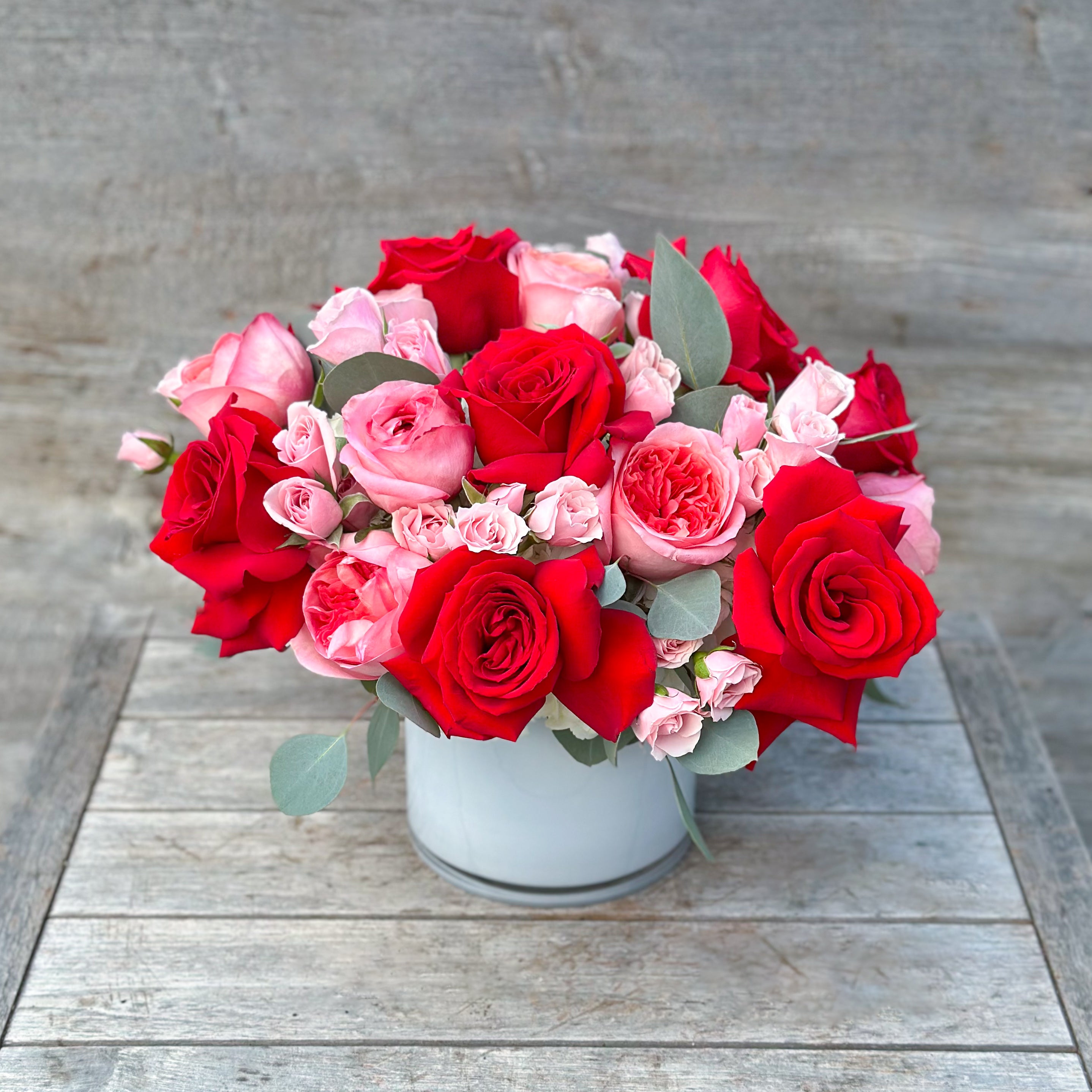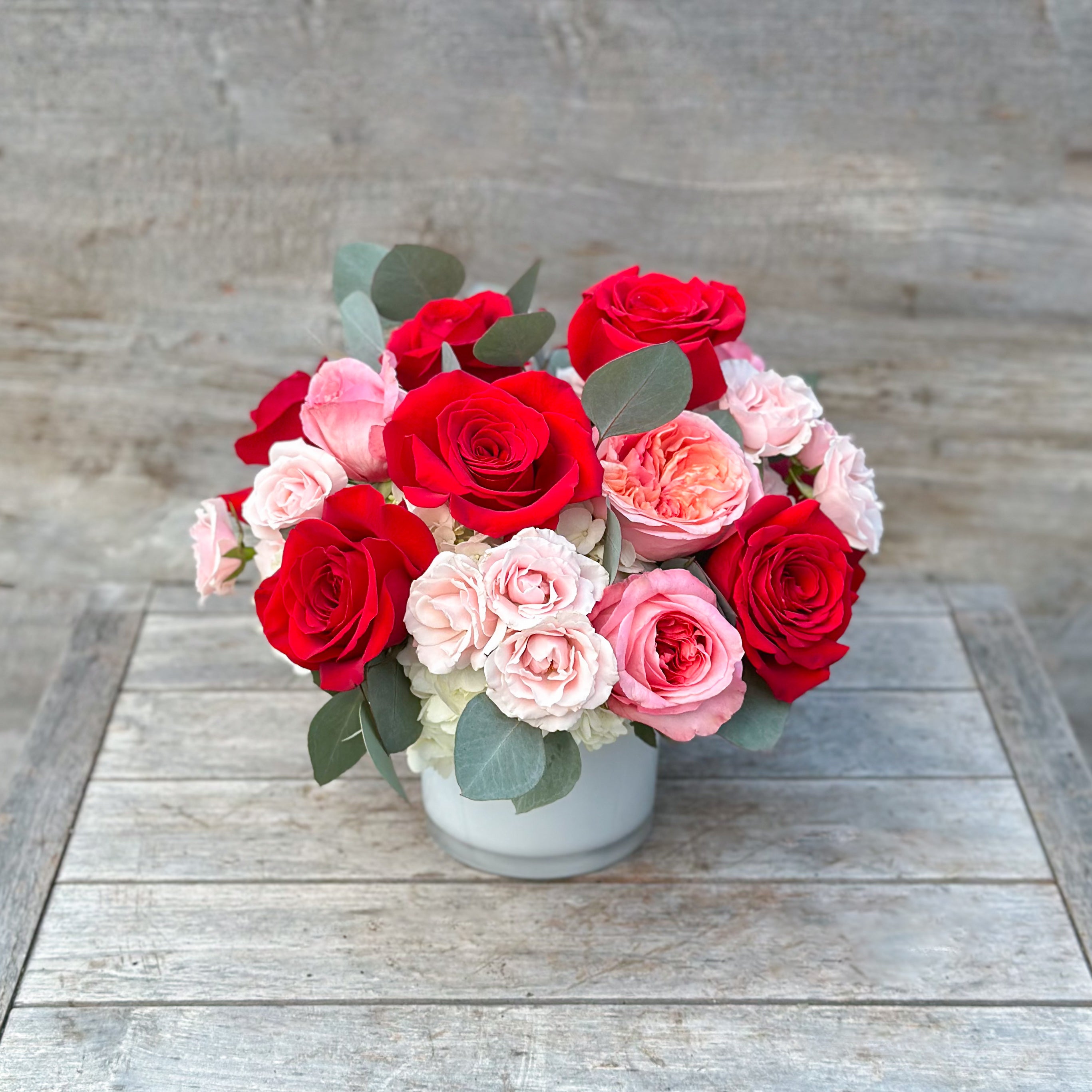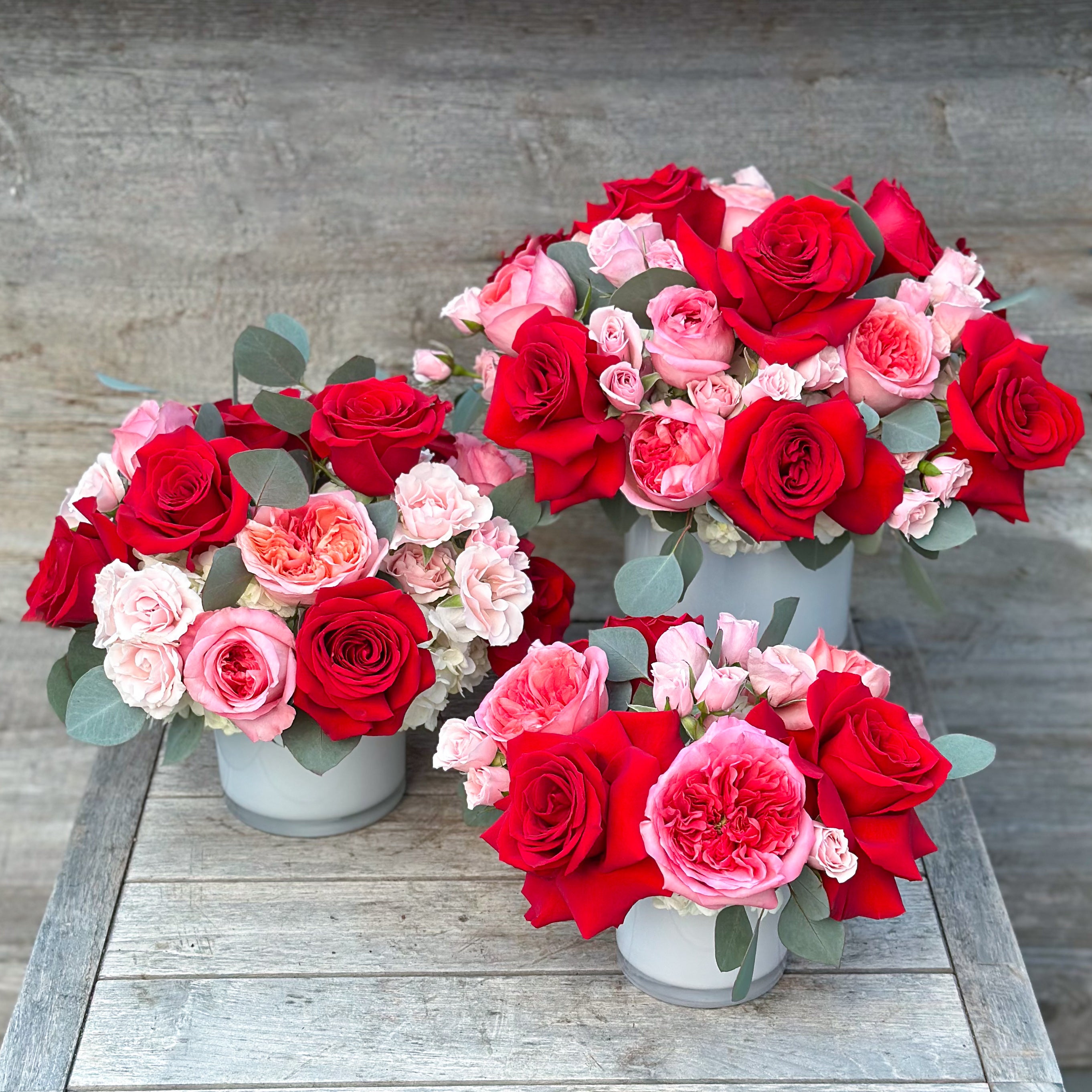 Designer's Choice arrangements are completely unique, and utilize the freshest flowers available, so the arrangement may differ slightly from the arrangement pictured. We will always honor the color palette (Red, Pink, Blush) and the overall vibe of the arrangement pictured. These custom arrangements allow us the creative freedom to express our love for floral art and deliver a truly unforgettable one-of-a-kind arrangement that will make a lasting impact!