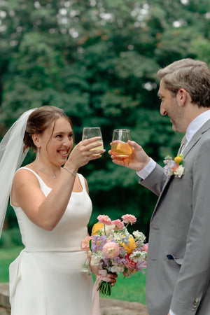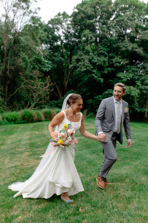 A whimsical and colorful backyard wedding in Westport, CT for Emma and Topher. Images captured by Forever Photography.