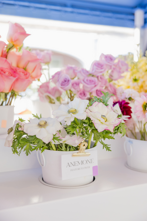 Hosting your event indoors? Give your guests the same unforgettable PETALS experience with our Bloom Bar - an indoor setup of chic french market buckets filled with flowers, for a build-your-own bouquet activity!