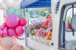 Our charming, vintage flower truck will pop up (or roll in, rather!) at your business, home, or event venue, loaded with seasonal blooms for your guests to hand-select a customized, lush, beautiful floral bouquet.